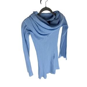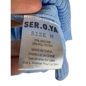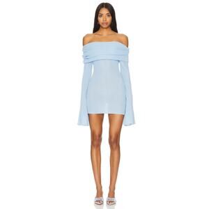 SEROYA Galli Mini Dress Ribbed Off The Shoulder Sexy Elegant Minimalist Blue M