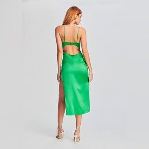 SER.O.YA Jamila Corset Top Silk Slit Dress in Kelly Emerald Green. Brand new with tag attached. Size Medium.