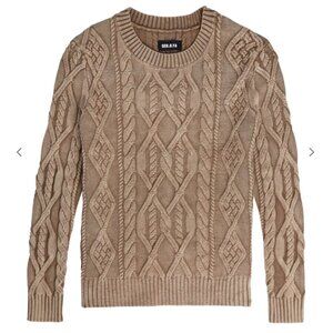 SER.O.YA Liam Cable Knit Sweater in Tan Acid Wash sz S