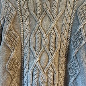 Design: Cable knit, crew neckline, long sleeves, acid wash finish