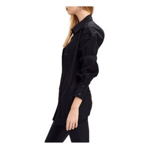 SER.O.YA Lydia Open Back Button Down Shirt Black Exaggerated Cuffs Built-In Bra