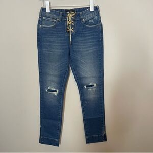 SER.O.YA MID RISE SLIM LACE UP LUCA JEANS DENIM NEW