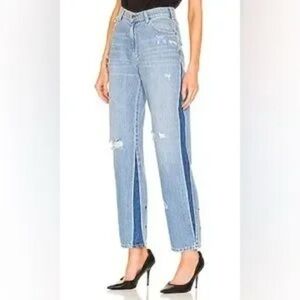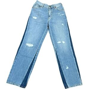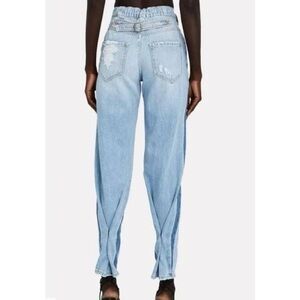 Distressed in their Mojave wash denim, the label's Maggie jeans are cut for a relaxed straight-leg silhouette. Featuring snap buttons along the back, this versatile pair can be styled with tapered cuffs for a nod to '90s trends. Zip fly and button closure. Five pocket styling. Elasticized back with belt detail.