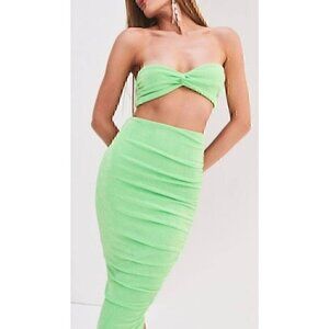 SER.O.YA NWT JULIA SET, BANDEAU TOP, MIDI SKIRT, RUCHING ALONG THE SIDE, GREEN