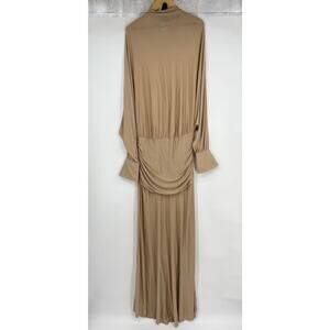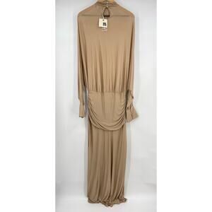 SER.O.YA | NWT Swan Gown in Tan Draped Jersey Long Sleeve Maxi M