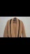 SER.O.YA 100% Wool Belted Shawl Collar Quin Cardigan Sweater Tan Black Trim