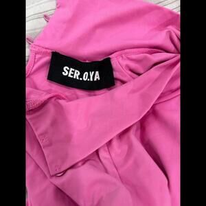 SER.O.YA Sample Sale Pink Mini Dress Mesh Cut Out Long Sleeve Turtleneck Small
