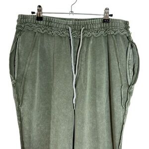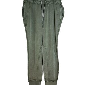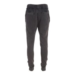 Lightly faded sweatpant with side pockets and drawstring tie waist. Tapered ankles with topstitched detailing throughout.