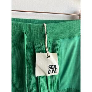 SER.O.YA Uma High Waisted Drawstring Short Womens Size XS Green Knit Pocket NWT