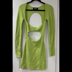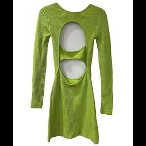 SER.O.YA Women’s Knit Bodycon Cut Out Mini Dress Small Green Long Sleeve Holiday