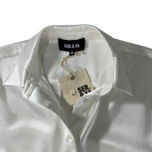 SER.O.YA Zucker Shirt Blouse XS Long Sleeve Button Front French Cuff Relaxed Fit