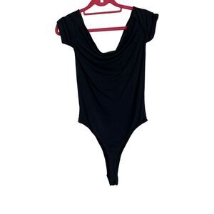 SER.O.YA Bodysuit Womens Small Black Twist Front Cutout Off the Shoulder Jersey Stretch NWT