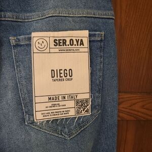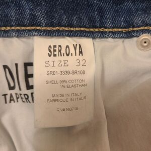 Masculine-style denim pant with drop crotch. Darts on back ankle. Distressed detailing throughout. Front and back pockets. Brand new with tag attached.