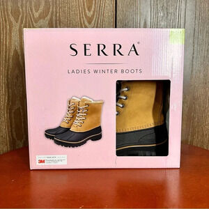 Keywords: Serra, winter boots, duck boots, waterproof boots, lace up boots, black boots, tan boots, womens boots, winter shoes, outdoor boots, weatherproof, insulated boots, snow boots