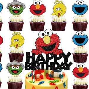 New! I bought this for a birthday party and used some. What I did not use I am selling all together as a set, or it would be thrown away. Someone will need this and for a small cost than found in stores. (Even if it is not for a party, it can be used at the beach picnic, something different and fun for kids to use during lunch time.) Note: Some things were used and is in good-like-new condition, such as the Elmo cake topper design. What is Included... (11) Sesame Street paper cups (4) Happy First Birthday Sesame Street Party Bags, Small (1) Glitter Elmo Cake Stand Topper (6) Birthday Hat Shape Candles NWT (5) Elmo 1st Birthday Invitation Cards, great for a very small party gathering Sorry, some stickers were used to seal the cards... (12) Small, Cookie Monster Paper Plates, good to use for cakes (13) Regular Size, Elmo Paper Plates, good to use for main dish meals (16) SESAME STREET Cupcake Toppers (1) Colorful Balloon table cloth, used, good condition (1) SESAME Sheet Photo Garland It shows one year of photos to share with at the party. You can change the clip boards and colors. The sticky tape is still new and have not used. Some craft has minor dents. See photos with both green cards.