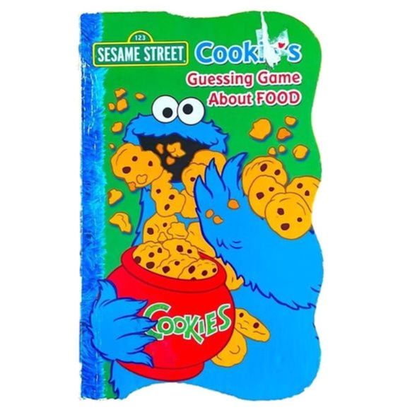 Sesame Street “Cookie’s Guessing Game About FOOD”. Please see image of damage to cover. Inside of book is like new. Price is adjusted due to damage.
