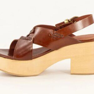 SESSUN Bhawan Clog-Style Leather Sandals: Cognac, Size EU40