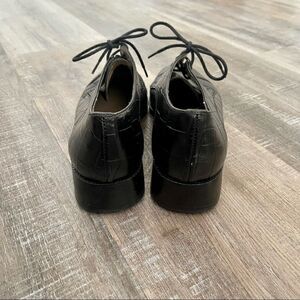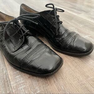 SESTO MEUCCI black alligator oxfords. Leather upper, leather insoles, and leather soles. Used, but still in great condition. They have been recently resoled with nonslip soles.