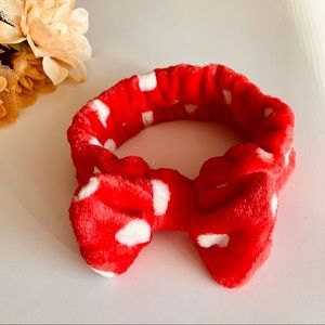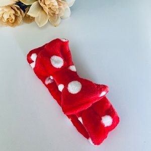 SET 2 Pcs SPA HEADBAND with Bow Red and White Polka Dot Women’s -Girls Hairband