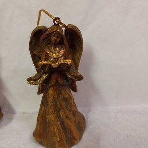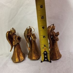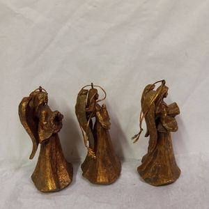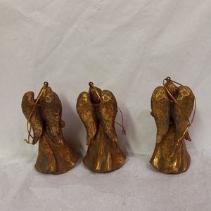 SET 3 Angel Cherubs Gold Glittered Ornaments Caroling 4" Free Standing