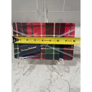 SET 4 Tommy Bahama Red & Green Tartan Plaid 8x5” Plates Appetizer Dessert Salad