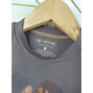 SET ACTIVE Women's Short Sleeve Cropped Ribbed T-Shirt Brown Size Small
