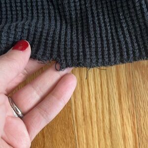 black thermal waffle knit long sleeved shirt