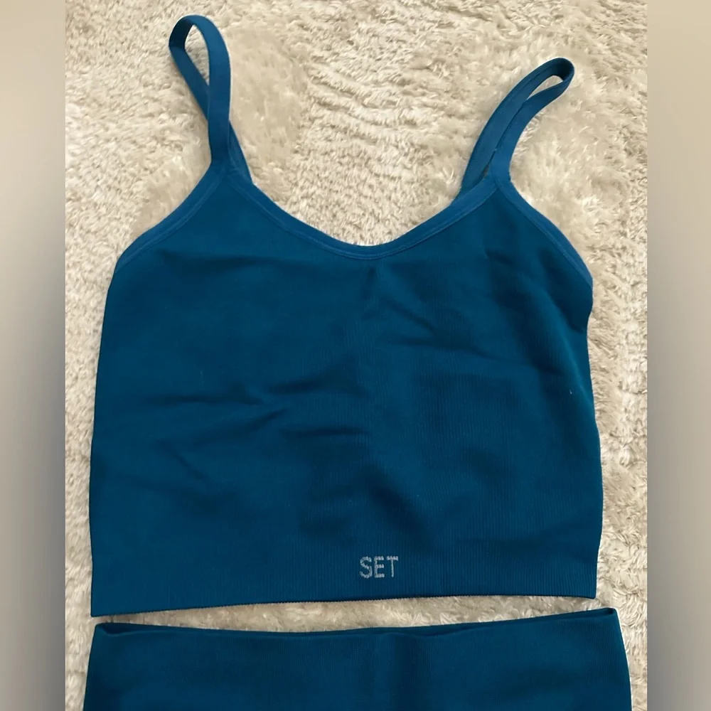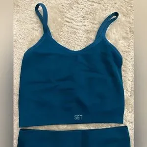 Pretty blue set active set. Leggings and cami. Cami is size medium leggings are small. Tops run small would fit xs-m. Worn once.