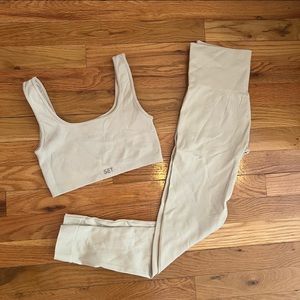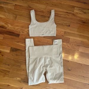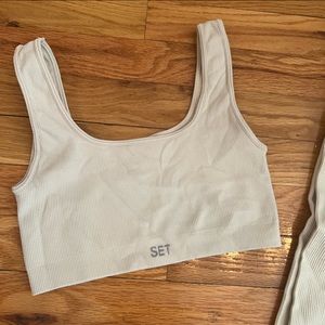 SET ACTIVE in oatmeal. Never worked out in. Only worn for a quick photoshoot indoors. Model is size 4