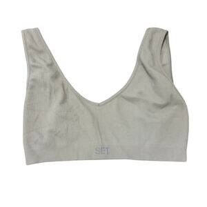 SET Active Gray Ribbed Seamless Sport Tank & Bra Matching Set Small Athleisure