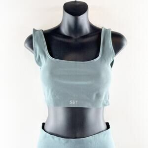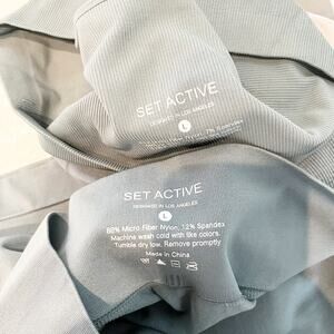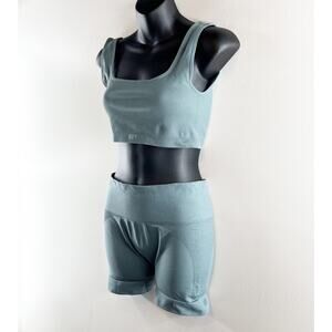 SET Active Sculptflex Power Ribbed Sports Bra Bike Short Set Muted Blue Large
