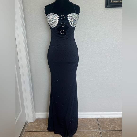 Chic strapless black dress by SET Active. Features striking silver embellishments. Perfect for elegant occasions.
