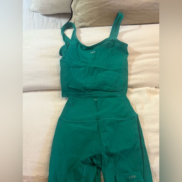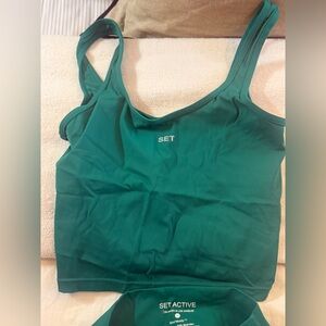 Stylish green activewear set. Includes a tank top and leggings. Worn only 3-4 times. Sports body material.