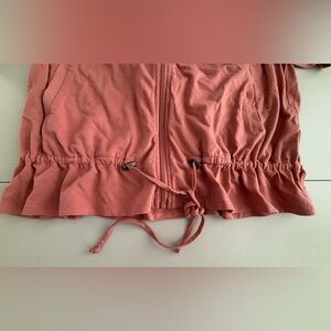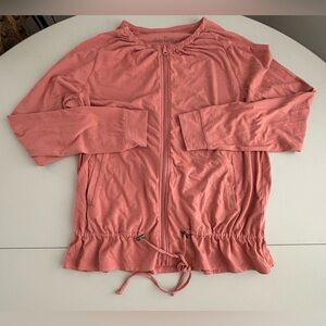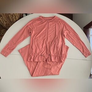 Ladies 2- piece, Any Body, lounge set. The pull ok , cropped pants have 2” elastic waist. 2- side pockets. The jacket has a full zip up front with pull string adjustable waist. Long sleeves with banded wrists. U/crew neck. Very comfortable lounge set! Lightweight, nice material. Sold on QVC. Good, used condition.