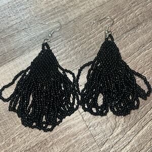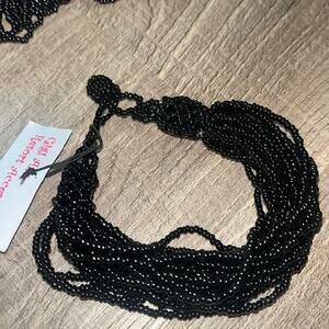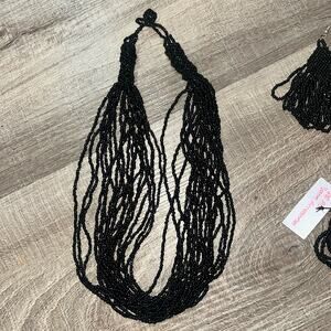 SET - Beautiful Black Handmade Beaded Necklace Bracelet Earrings