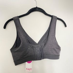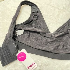 Enjoy the comfort and flexibility of the Freya nursing bra and brazilian thong set in charcoal . The wireless soft triangle shape and front wrap styling is designed with an internal A-frame that supports the bust while feeding, alongside an easy access clip adjustment and lace detail. This is a bundled deal.