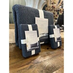 This listing is for a brand new Casaluna Full/Queen Textured Waffle Coverlet Set in Dark Mineral Blue.