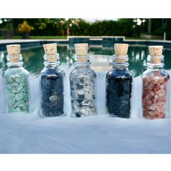 SET Gemstone Bottle Set BIG 30 Ml | Crysal Chips Bottle | Tourmaline | Sunstone | Rainbow | Iolite | Amazonite