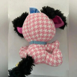 DESIGNER PLUSH FASHION PET: Cala Bassethound, a stuffed dog, daydreams about the gorgeous gowns she’ll model on the red carpet with her uniquely fuzzy ears and pink and white houndstooth fur.
