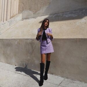 SET Mango Houndstooth Blazer Jacket Skirt Buttons Lilac New