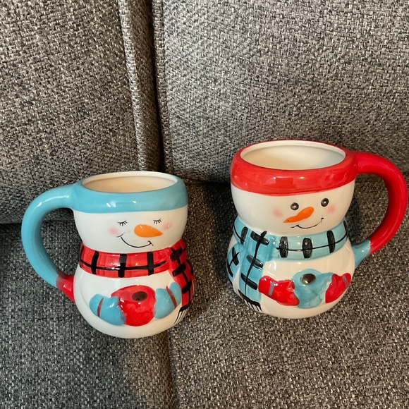 SET OF 2: BAY ISLAND BLUE & RED SNOWMAN MUG & set