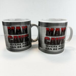 SET OF 2 BAY ISLAND MAN CAVE WHERE MEN CAN BE MEN 2015 LARGE COFFEE MUG CUP