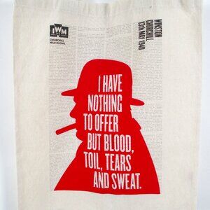 #1: 100% Cotton tote bag featuring a quote taken from Churchill's famous Parliamentary speech on 13th May 1940. Out of stock at the museum!