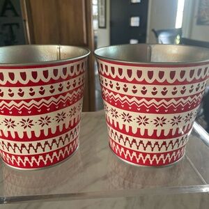 SET OF 2 IKEA VINTER 2017 RED/WHITE XMAS/WINTER DESIGN 4 3/4" PLANTER POT