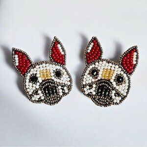 SET OF 2 PAIRS NEW Frenchie French Bulldog Seed Bead Earrings Boutique Quality