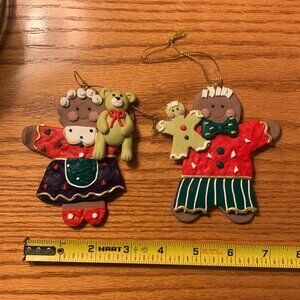 SET OF 2 RUBBER GINGERBREAD FIGURES, MALE AND FEMALE, CHRISTMAS ORNAMENTS