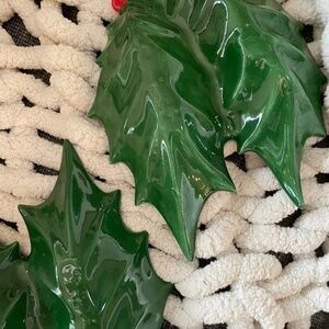 SET OF 2 VINTAGE CERAMIC HOLLY BERRY DIVIDED CANDY/RELISH/TRINKET DISH