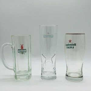 SET OF 3 HEINEKEN & HEINEKEN LIGHT BAR GLASSWARE