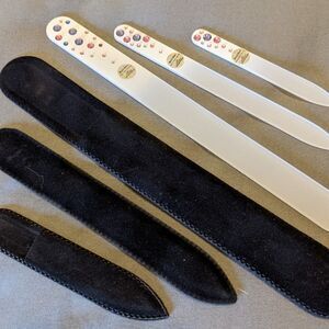 🆕SET OF 3 MONT BLEU DOUBLE SIDED WHITE GLASS NAIL FILES W/ SWAROVSKI CRYSTALS
