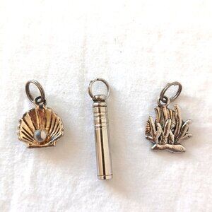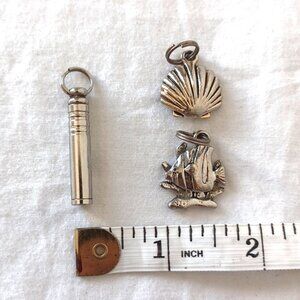 SET OF 3 Metal Charms for Womens Bracelet Keychain, Seashell Whistle Fish Silver